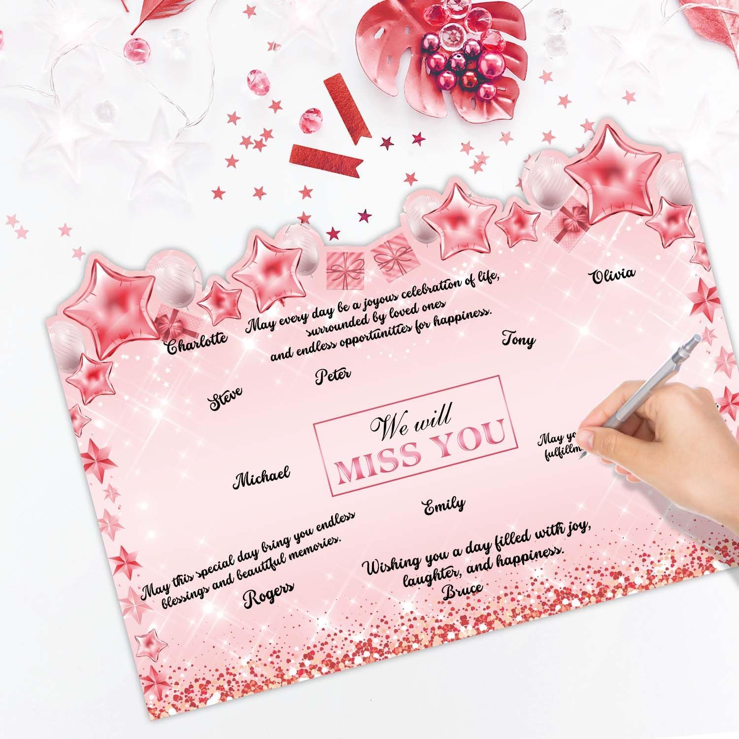 特大ローズゴールド退職グリーティングカード、退職パーティーの装飾、別れのゲストサインインブック、退職ギフト、退職後の代替サイン入りゲ 30032メッセージカード 手作り 退職 送別 お礼 プレゼント プリザーブドフラワー ローズ バラ ポスト投函 ギフト 花束 立体。