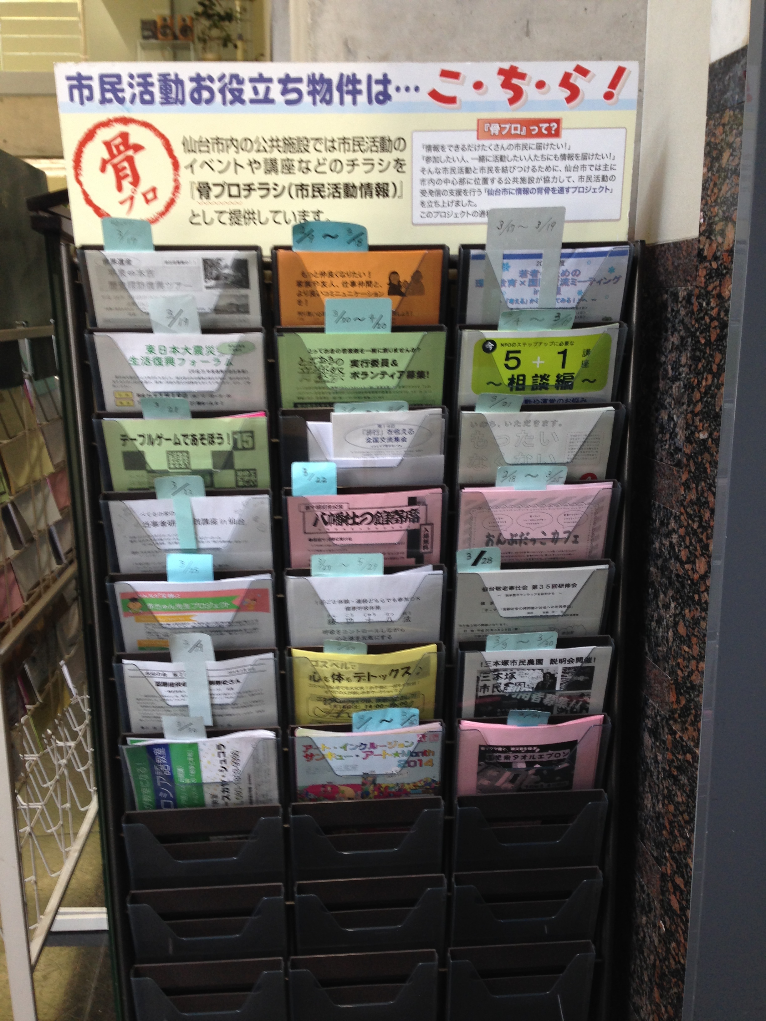 新所沢公民館のチラシスタンド: PRIDE OF WestSaitama。