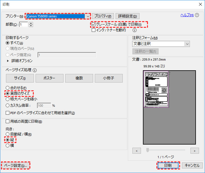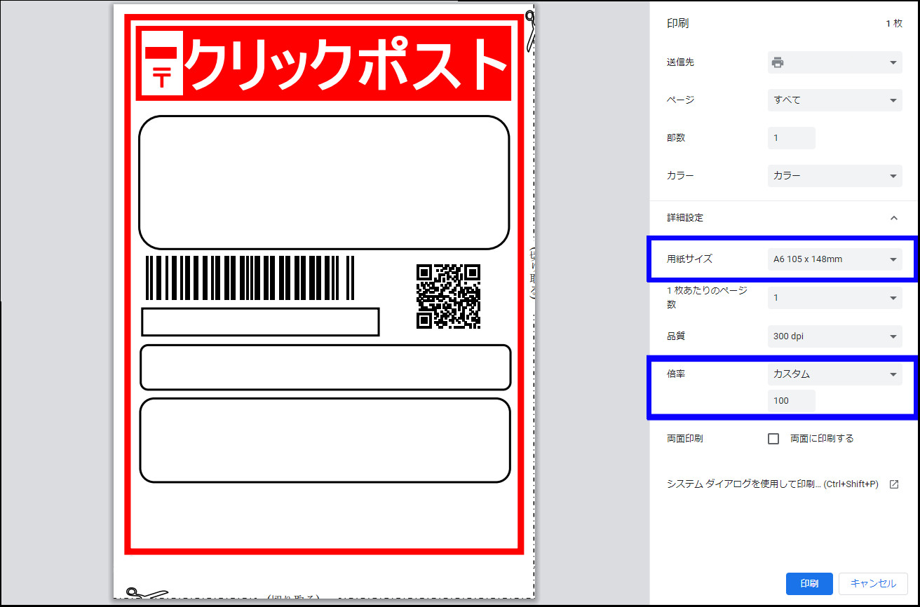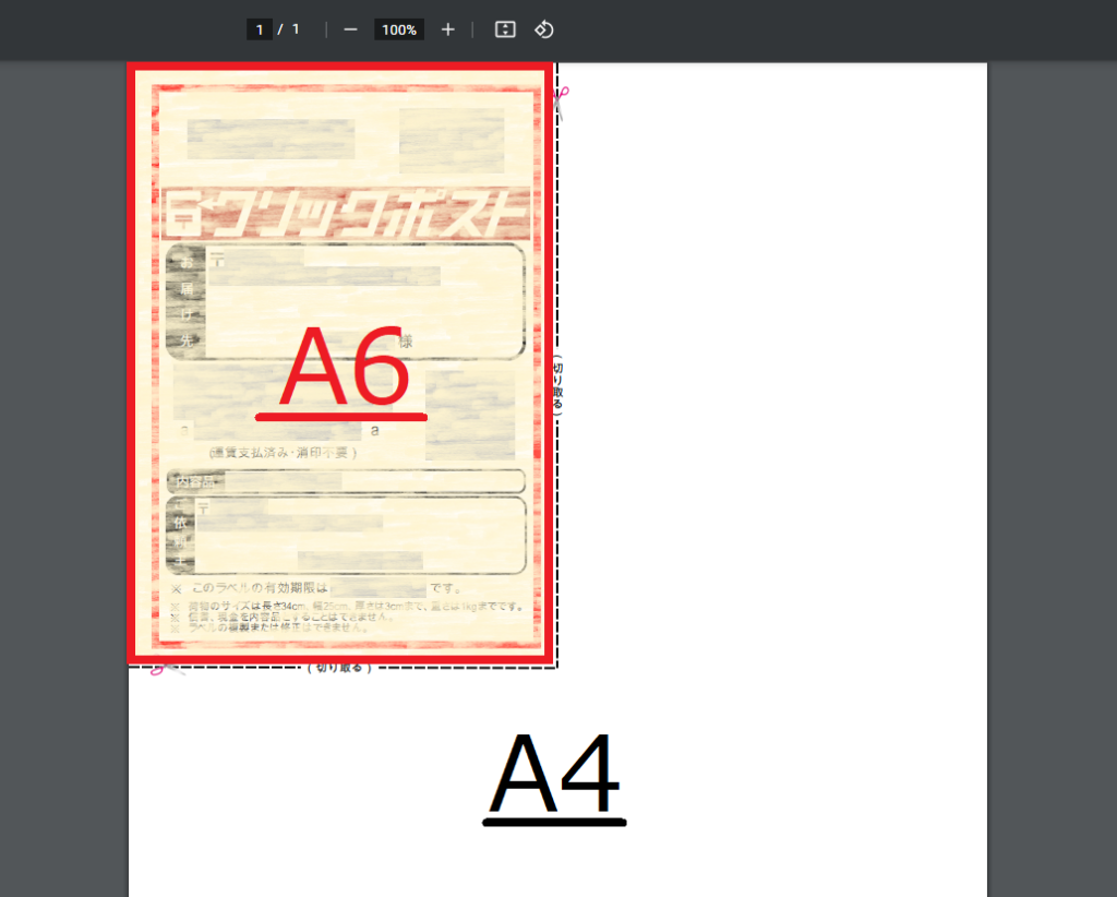 クリックポストのA4のPDFをA6紙に印刷する方法chibi-key blog。