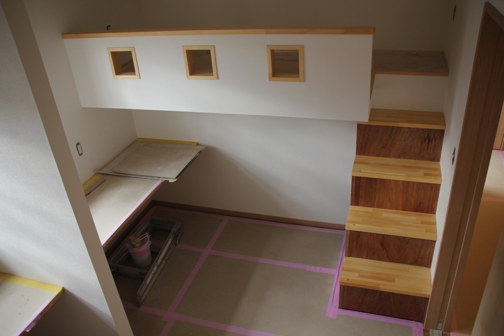 秘密基地的なロフトの子ども部屋へ。段違い箱階段ができるまで。えんがわ商店セルフビルドパートナ。