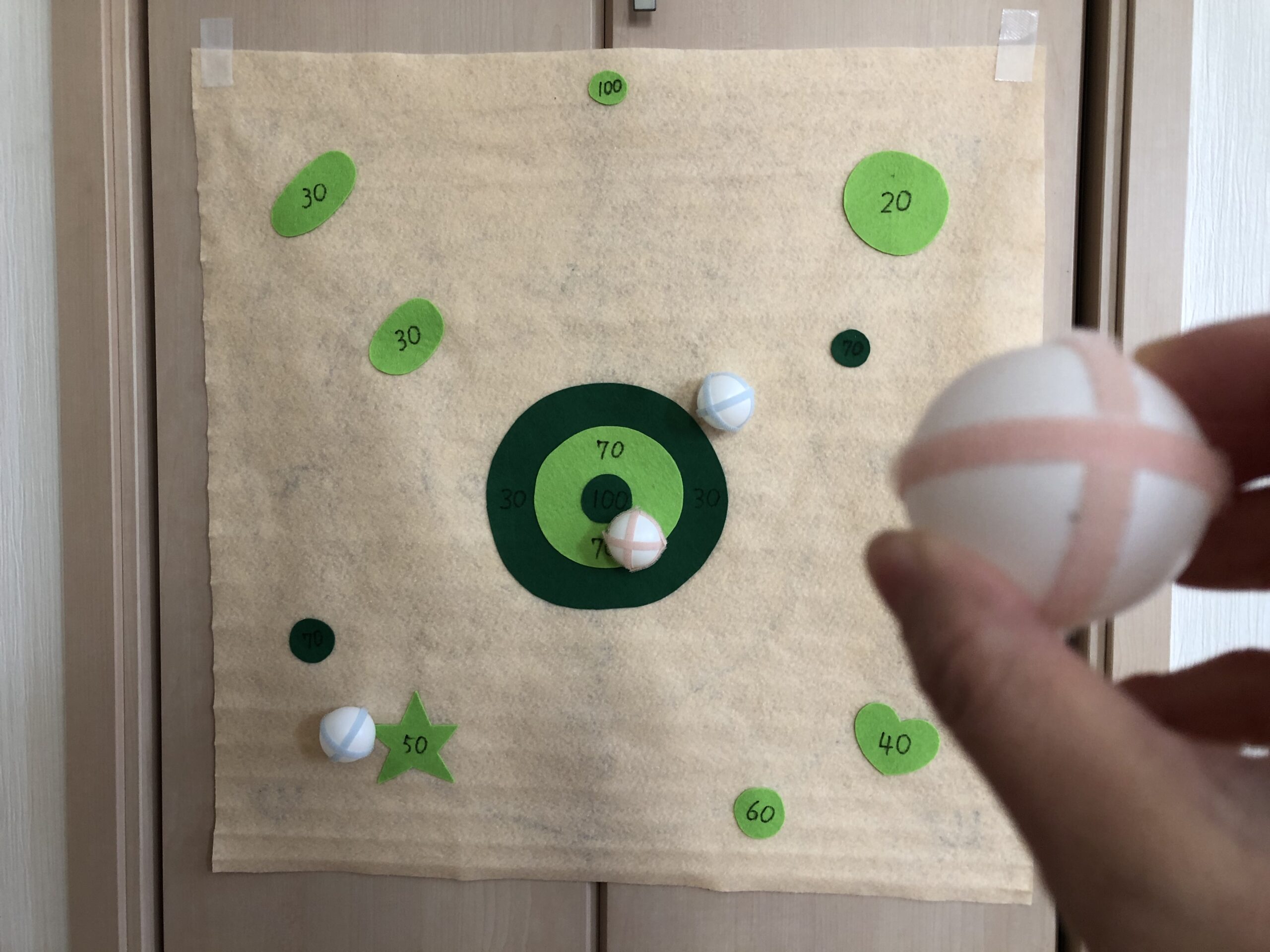 まるたけ@子育て漫画 on X: "ダイソーで的当てを買ってみました!シンプルに遊べて、息子もハマっています😊数字の学習にも良いなと思っていたのですが、意外なところで数字を学んでいました😅子育て漫画育児漫画4歳男子ダイソー100均ボールでダーツ漫画。