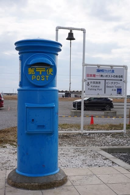 全国初!の「青い丸型ポスト」が海の駅九十九里に設置されました!海の駅九十九里 九十九里の魅力発信基地! 千葉県九十九里町。