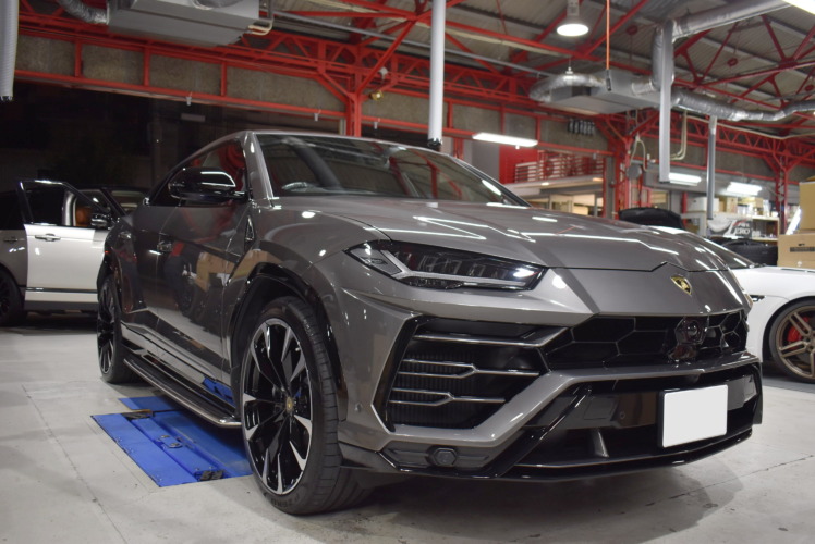 ランボルギーニ ウルスにラッピング リアディフューザー、サイドガーニッシュアクラボヴィッチマフラー取付けカスタムを行いました!!東京都世田谷区Ge3y's株式会社 ジェミーズ 、新車、中古車 、カスタムならお任せください。