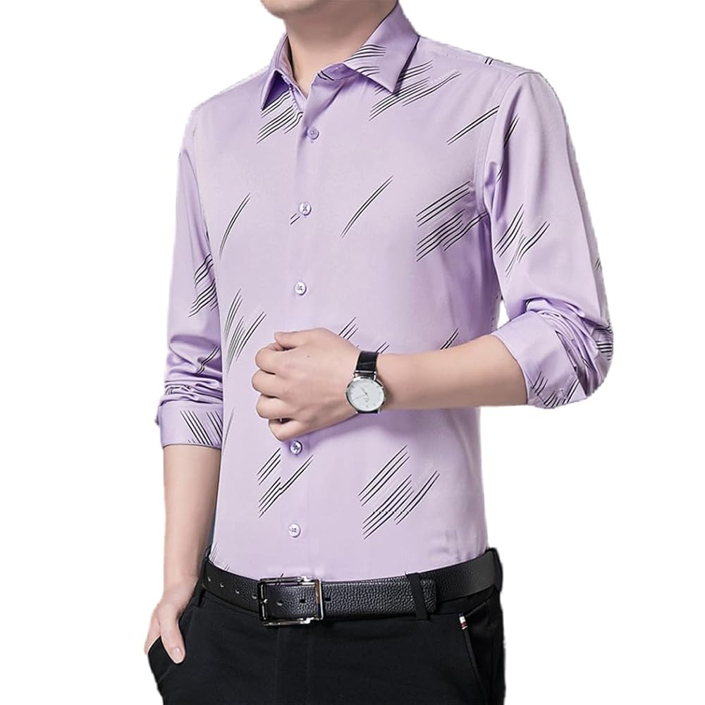 Amazon.co.jp:NOLCCTNワイシャツ メンズ 春 夏 秋 斜めストライプ シャツ ビジネス フォーマル シンプル カジュアル長袖 トップス 大きいサイズ 通気性 速乾性M, パープル: ファッション。