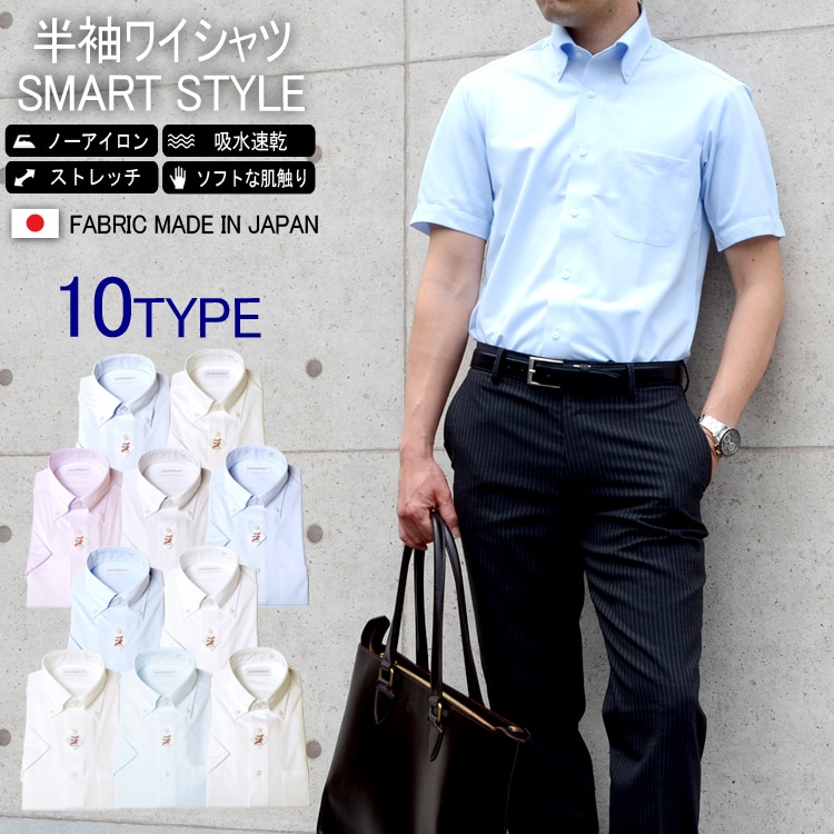 ワイシャツ メンズ 半袖ワイシャツ 日本製生地 ノーアイロン 形態安定 ストレッチ ニットシャツ レギュラーカラー ボタンダウン 半袖 Yシャツカッターシャツ ビジネスシャツ 父の日シャツスーツのアウトレット工場。