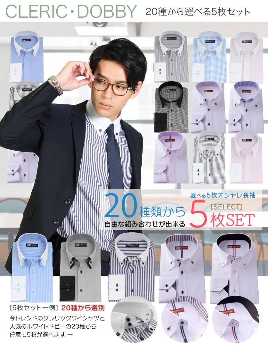 ワイシャツ 5枚セット 長袖 9サイズ 送料無料 形態安定 メンズ yシャツ ドレスシャツ セット シャツ ビジネス ゆったり スリム おしゃれカッターシャツ ボタンダウン ホリゾンタル 標準体 細身体 衣替えflm-l01FLiC -フリック- ワイシャツ専門店。