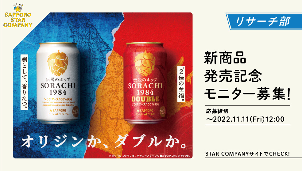 飲料・食品、かっこいい、シンプル、高級感・きれいめのバナーSORACHI1984と新商品を飲んで 1984年にまつわるエピソードを教えてくださいBANNER LIBRARY。