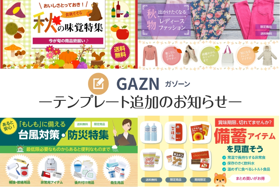 テンプレート追加 GAZN ガゾーン に、秋の特集・防災対策商品に使えるバナーを追加! - B-Spaceブログ -Yahoo!ショッピング出店者様向けお役立ち情報。