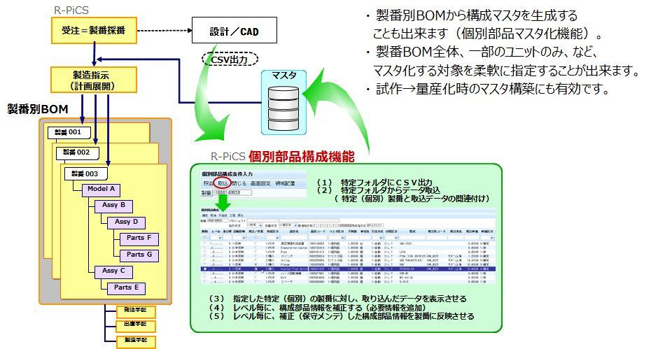 個別受注生産対応 V4 Ex製品紹介R-PiCSの機能詳細標準機能生産管理システムをお探しなら生産現場の声によって作られた純国産システム『R-PiCS アールピックス 』 20年以上の構築・運用ノウハウから、お客様のニーズに合ったシステム導入をご提案します。