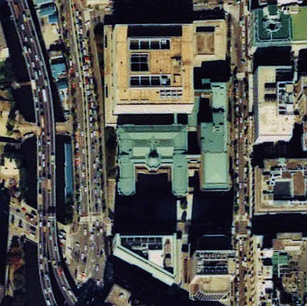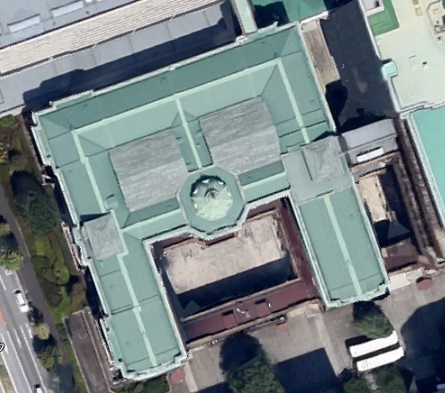 天空から2 日銀本店を上から見ればフォーラムミカサ エコ。
