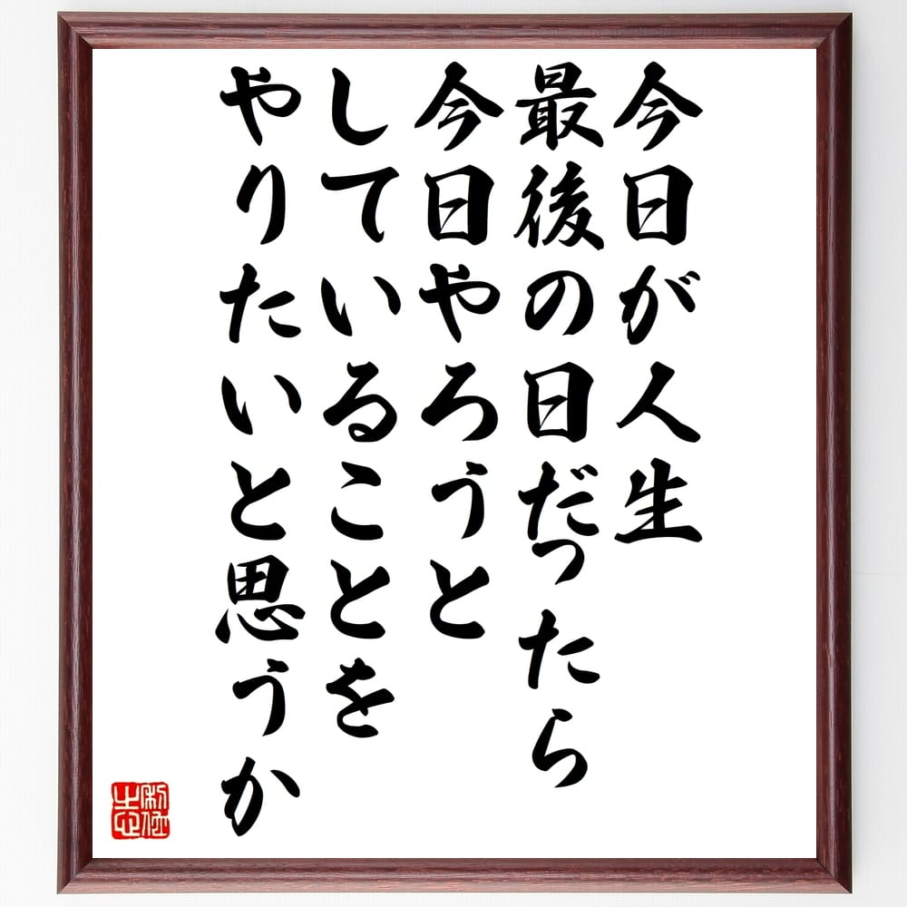 スティーブ・ジョブズの名言「今日が人生最後の日だったら、今日やろうとしていることをやりたいと思うか」額付き書道色紙 受注後直筆 スティーブ・ジョブズ名言 偉人 座右の銘 壁掛け 贈り物 プレゼント 故事成語Sizeee。