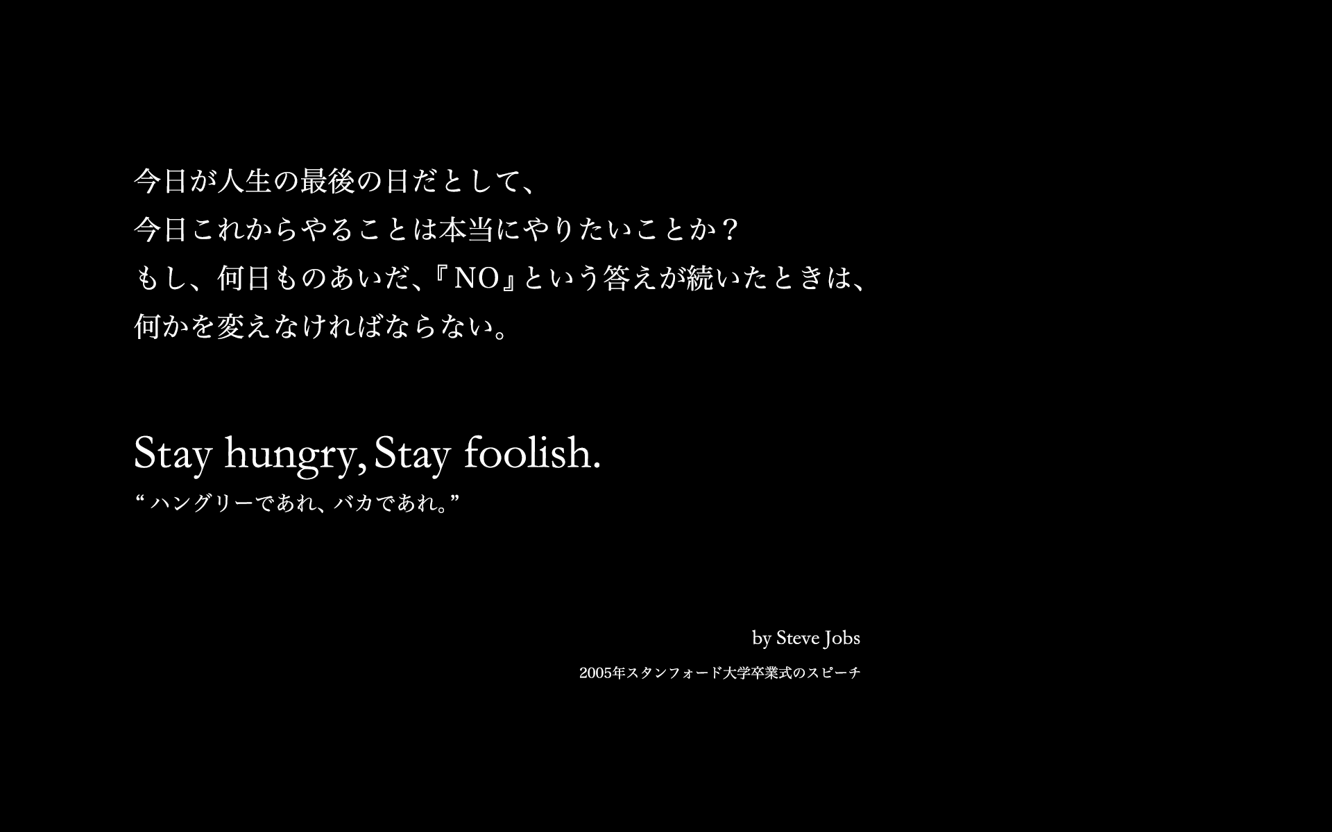 スティーブ・ジョブズ「Stay hungry, stay foolish. 」壁紙ダウンロードスーログ。