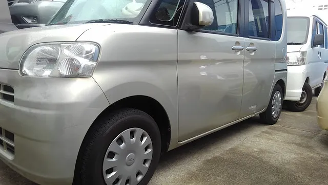 ダイハツ・タントの側面を石垣で擦った修理 交換せずに板金塗装修理。