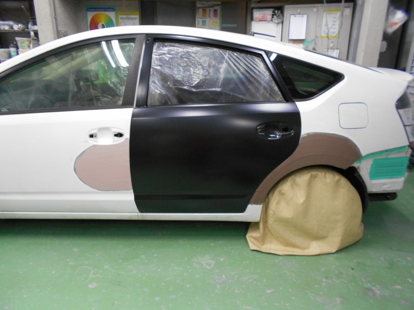 トヨタ プリウス ガードレールにぶつかった右側面の板金修理東京都 青梅市板金塗装・キズ・ヘコミ・事故車修理・新車販売・中古車販売・自動車買取新生自動車 東京都 青梅市。