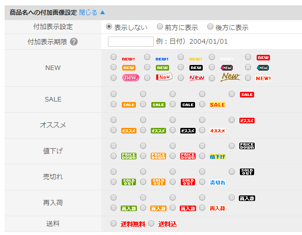 付加画像 アイコン をオリジナルデザインに変更するカラーミーショップテンプレートカスタマイズ例KTG creation。