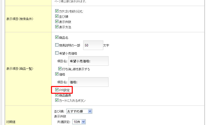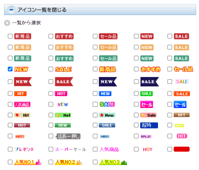 商品一覧ページや商品詳細ページにPRアイコンを設定したい 2 ~商品一覧ページに表示する~ – aishipRオンラインマニュアル。
