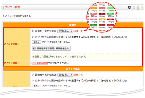 アイコン設定futureshopオンラインマニュアル。