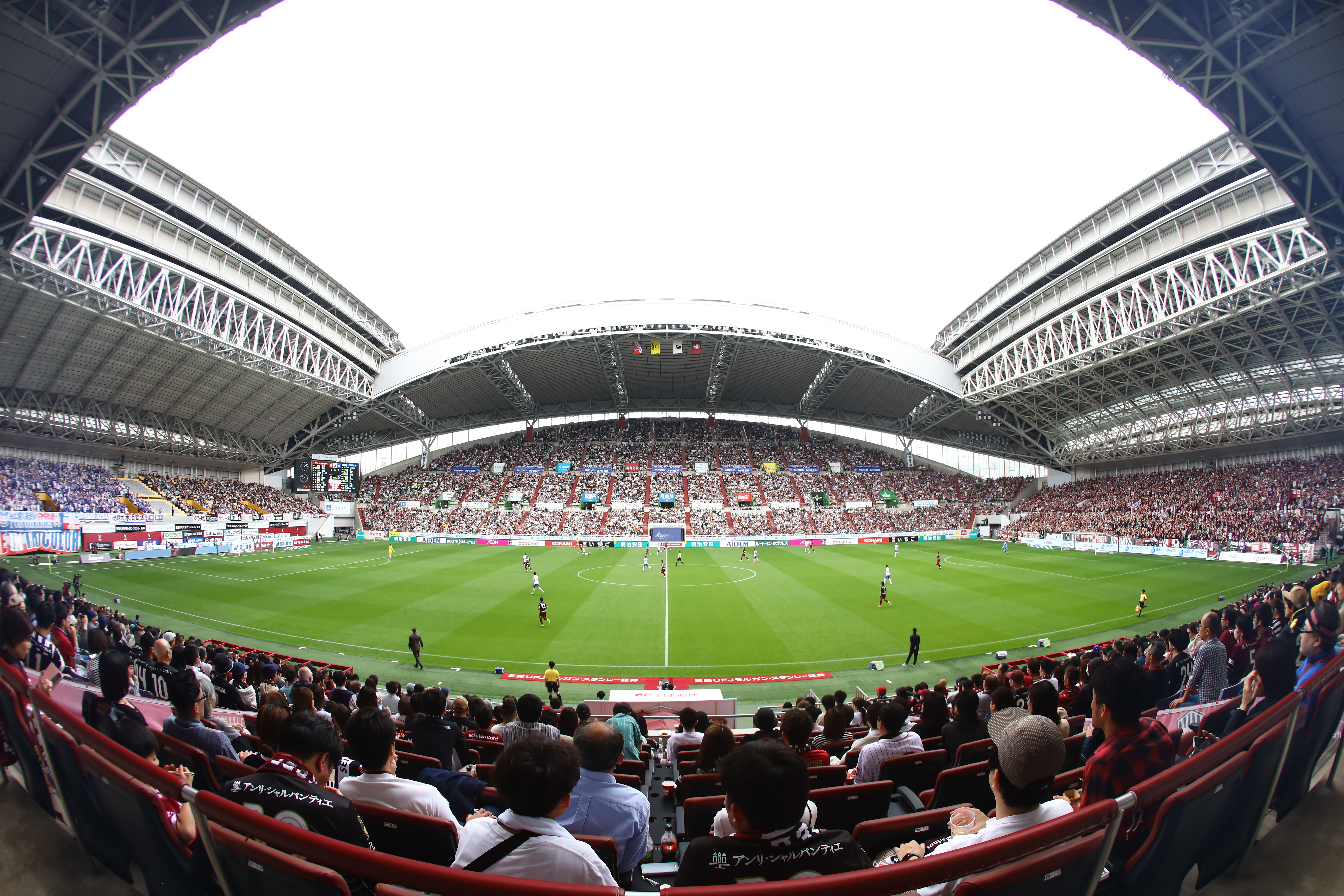 ノエビアスタジアム神戸の可動式屋根をじっと見る20分間株式会社ハートカンパニ。