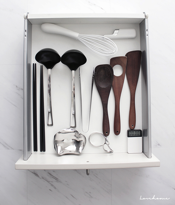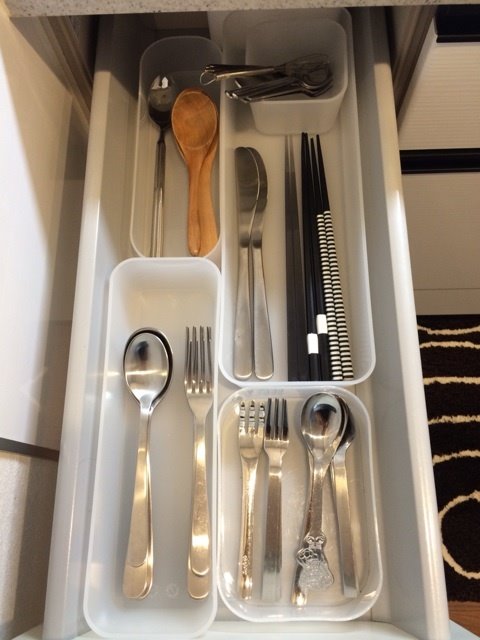 調理器具とカトラリーを引出しにスッキリまとめる収納方法fatetto。