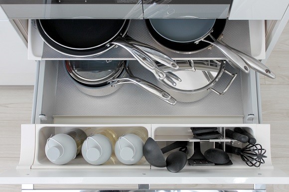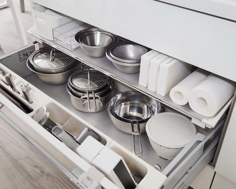 キッチンの引出し収納のコツをプロが伝授!シンク下やコンロ下を上手に使おうサンキュ。
