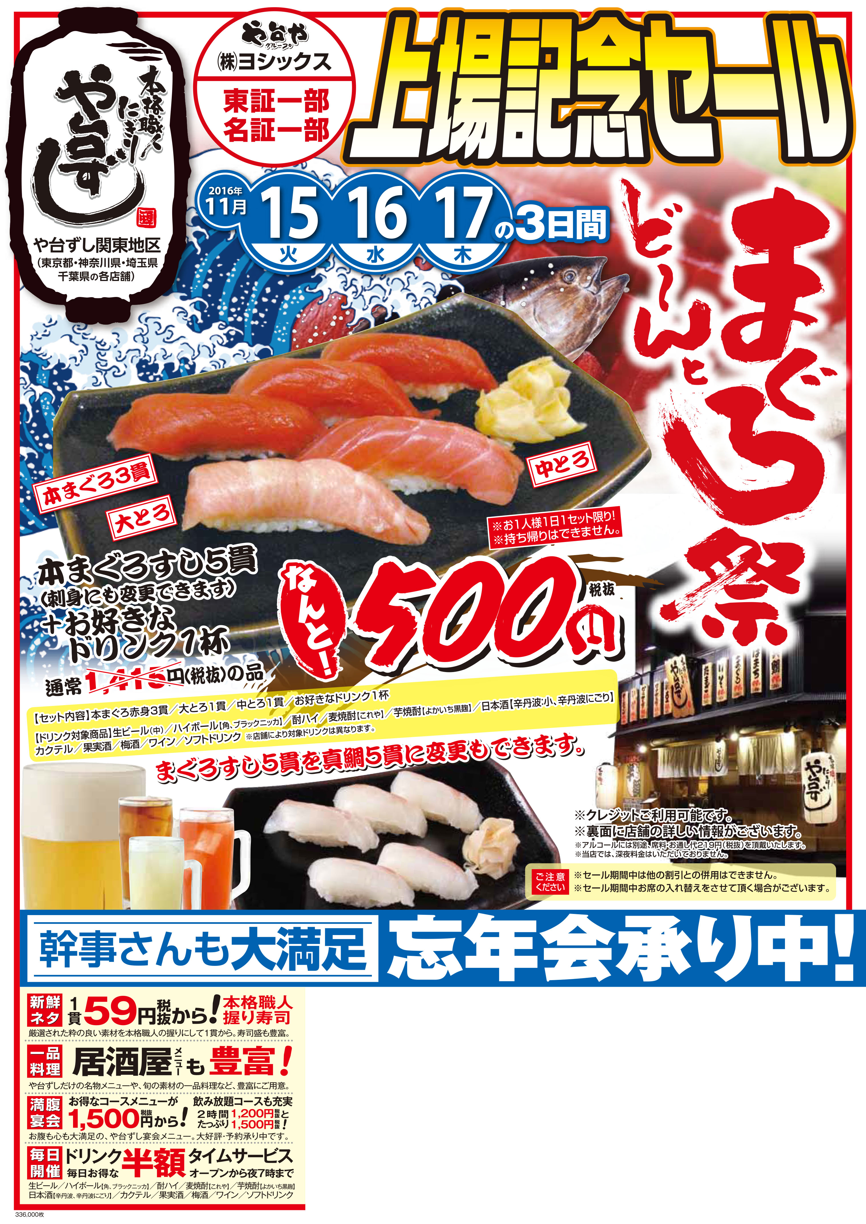 222店舗の居酒屋を展開するヨシックス、上場セール開催! 「や台ずし」「ニパチ」など全国各地で11月から実施株式会社ヨシックス。