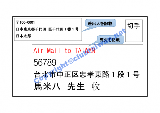 日本から台湾へのハガキ・手紙・郵便物の出し方・書き方。