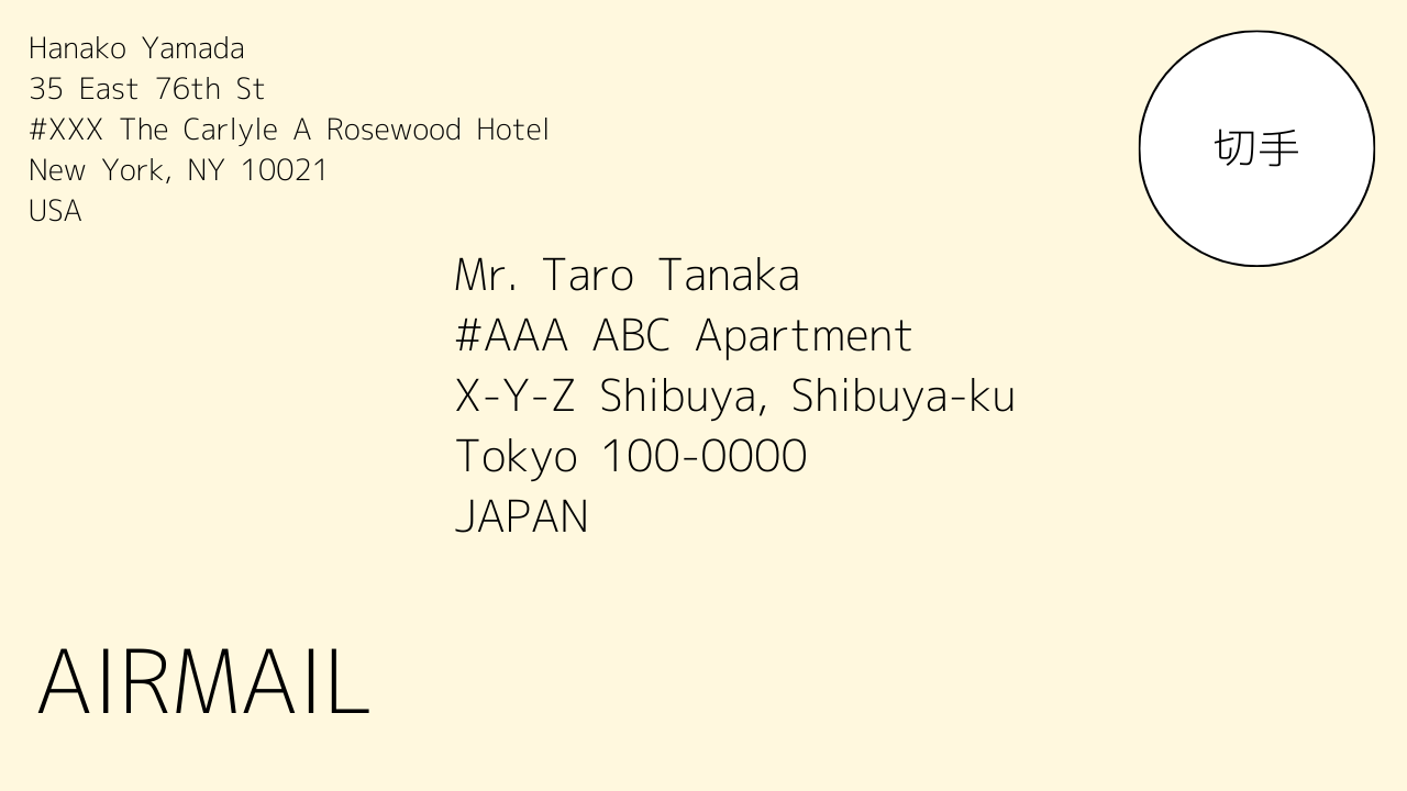 アメリカから日本に手紙を送る方法:宛名の書き方、切手の買い方と料金、所要日数│みんとらべるニューヨーク。