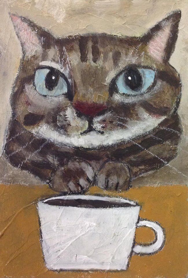 高原鉄男 小さな小さな幸せ 猫の絵 絵画 高原鉄男さん猫の絵高原。