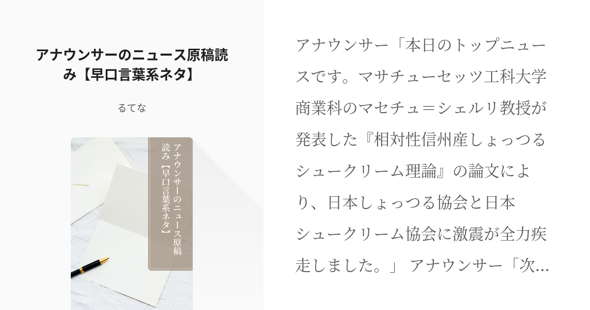 フリー台本アナウンサー アナウンサーのニュース原稿読み 早口言葉系ネタ- るてなの小説 - pixiv。