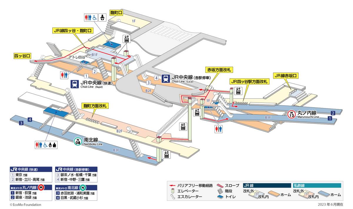 JR東日本:駅構内図・バリアフリー情報 四ツ谷駅。