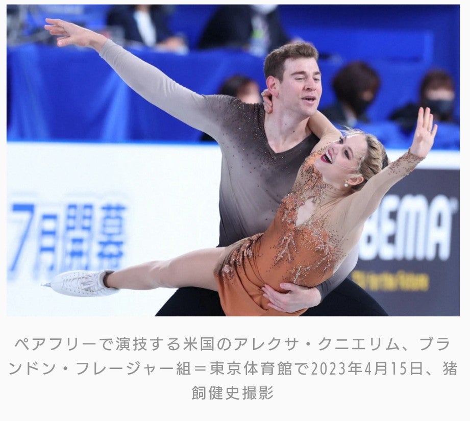 ペアフリーで演技をするアレクサ・クニエリム選手、ブランドン・フレイジャー選手組 51 60 -銀盤の世界決戦へ 海外の強豪たち世界フィギュアスケート国別対抗戦:朝日新聞デジタル。