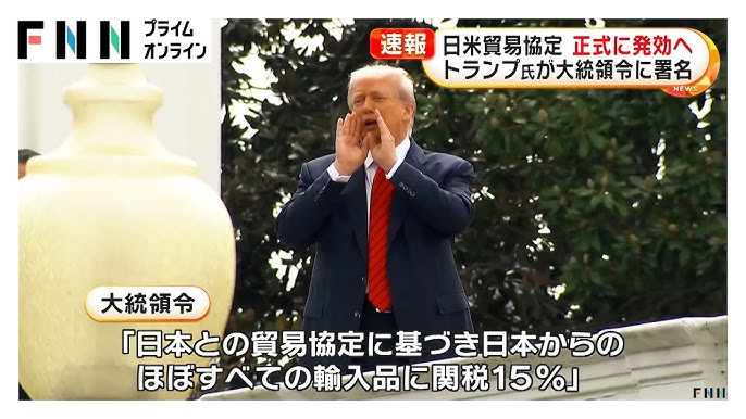 速報 日米関税合意 トランプ大統領が大統領令に署名「日本の自動車関税15%に引き下げ」「相互関税15%の特例措置」などTBS NEWS DIG。