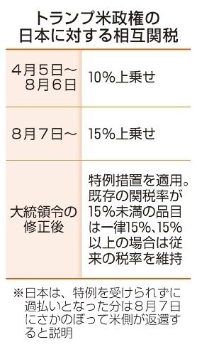 相互関税」15%7日発動 米と認識に食い違いも 「やぶ蛇」恐れ文書作らず:北海道新聞デジタル。