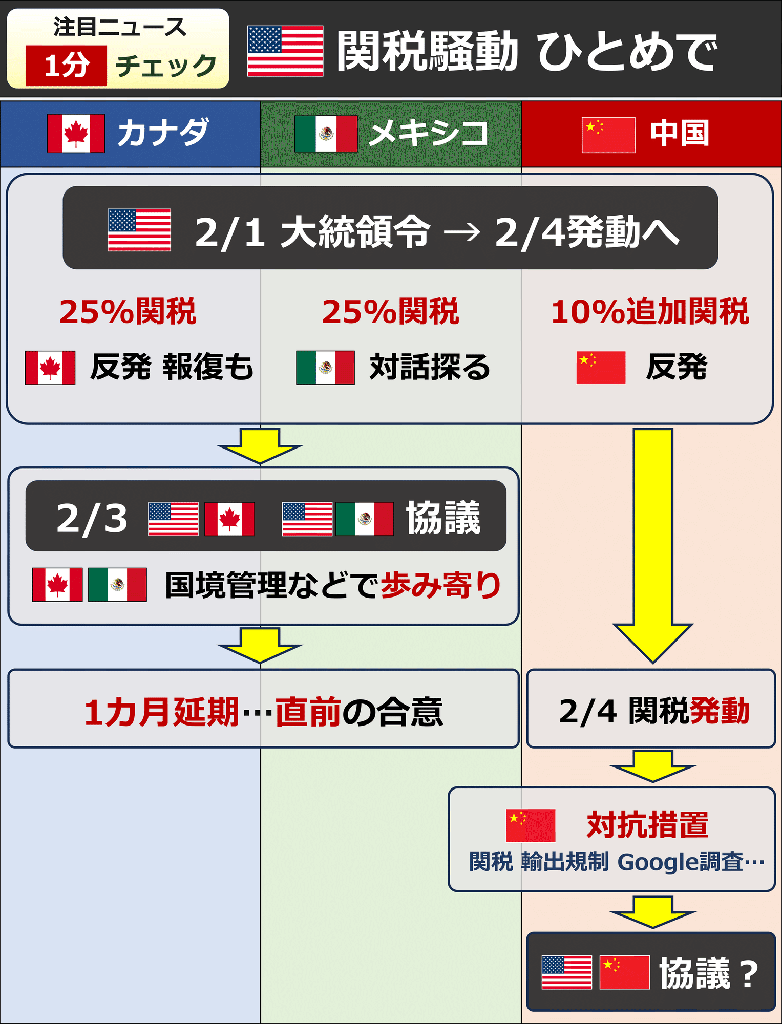 トランプ関税4日発動 カナダ・メキシコ、報復の連鎖に 大統領令署名 世界経済を下押し - 日本経済新聞。