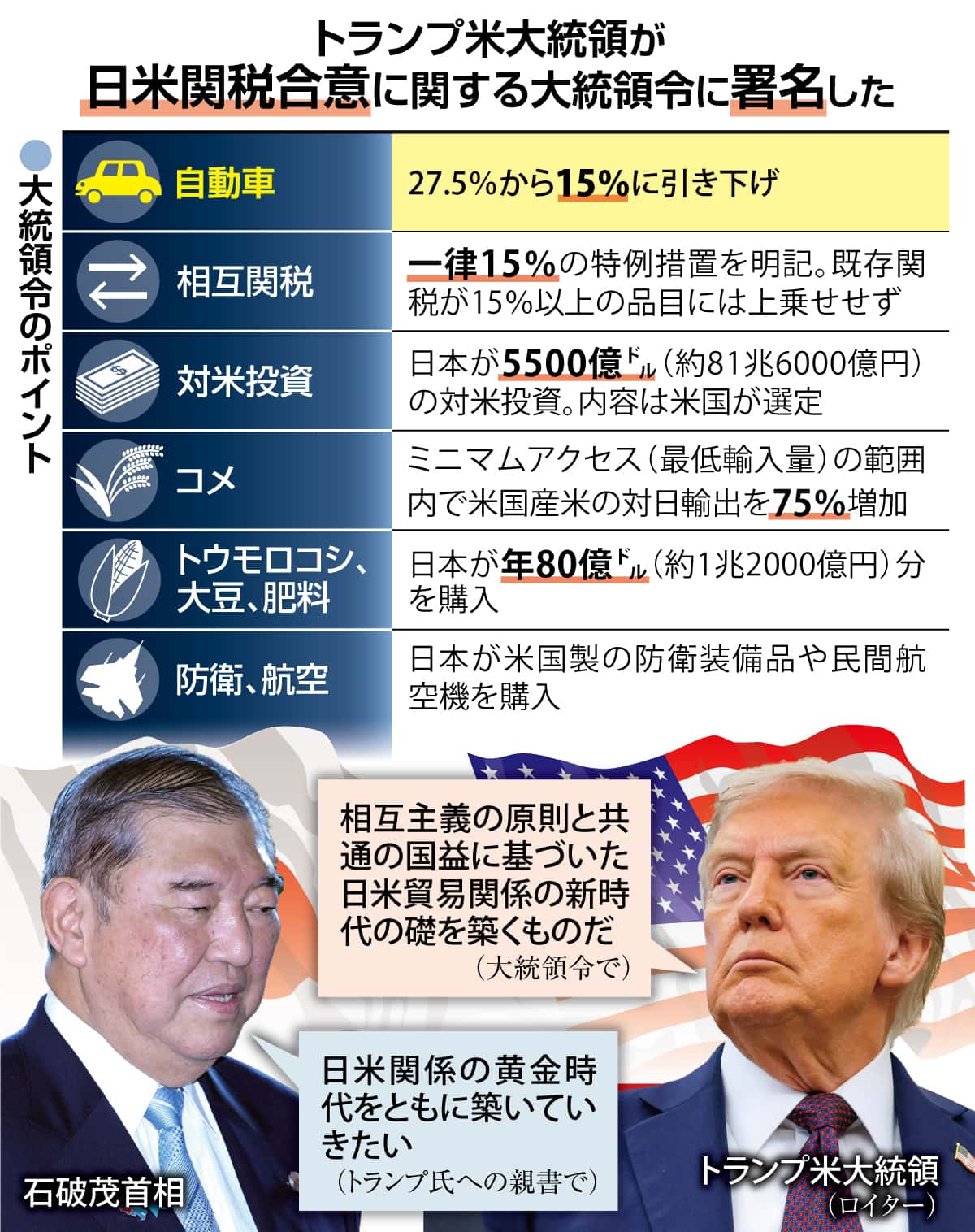 検証:対日関税 米大統領令 迷走決着、まず安堵毎日新聞。