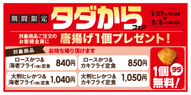 松のや 唐揚げ1個プレゼント「タダからフェア」開催!株式会社松屋フーズホールディングスのプレスリリース。
