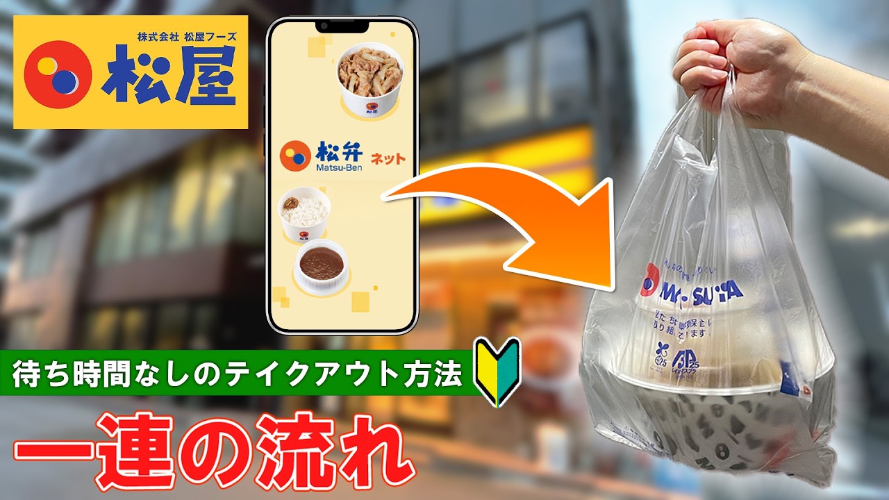 日本の牛丼チェーン 松弁ネットを利用した松家のテイクアウト方法 一連の流れ。