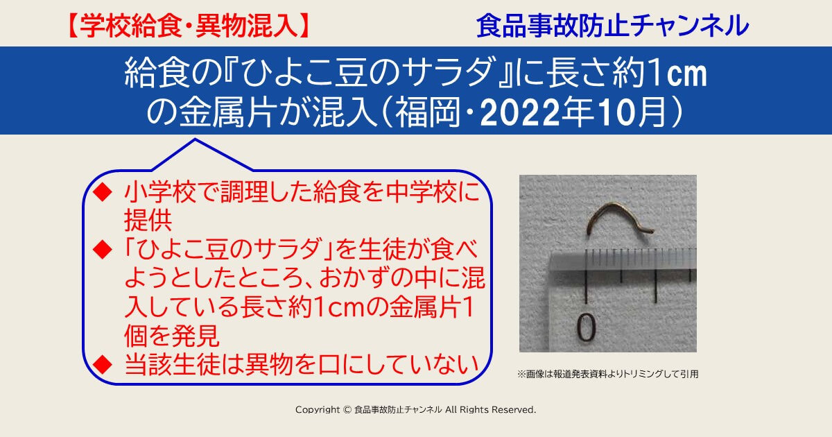 給食のパンに金属片が混入・金属探知機で異物に気づくも誤って納品 滋賀・2022年2月食品事故防止チャンネル 食品表示・食品衛生・学校給食・異物 混入・危機管理・企業研修。