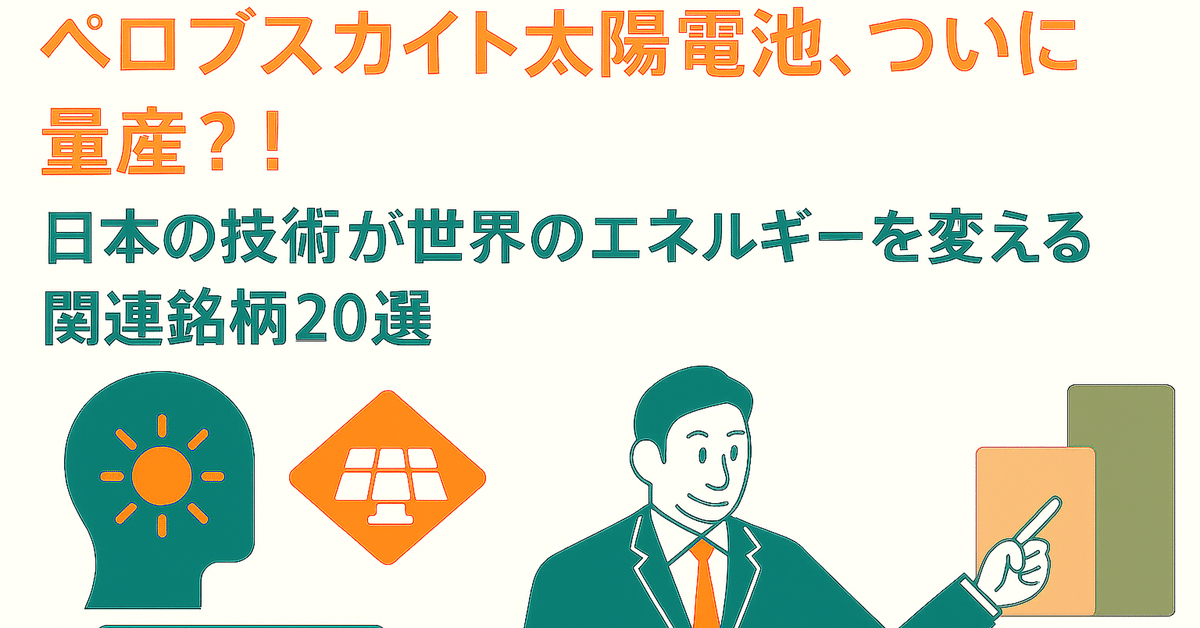 再生エネ拡大の切り札、「ペロブスカイト太陽電池」で輝き放つ銘柄群 <株探トップ特集>特集 - 株探ニュース。