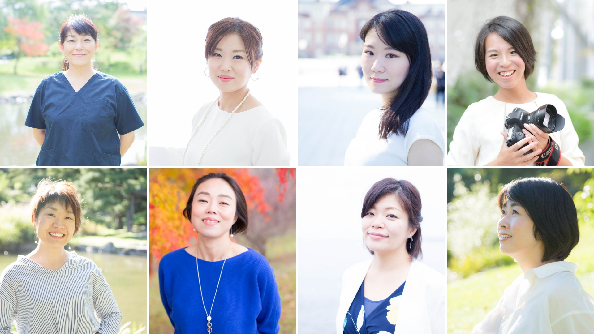 緑あふれる街中でバリエーション豊富な女性のビジネスプロフィールOurPhoto アワーフォト。