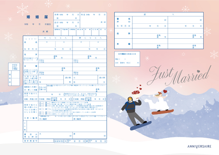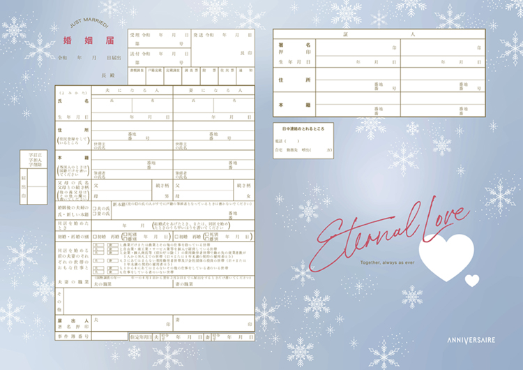 50万組以上が選んだ アニヴェルセルオリジナル婚姻届冬をテーマにしたおしゃれなデザイン4種が新登場!お知らせ アニヴェルセル結婚式・ウェディングブランドサイト。