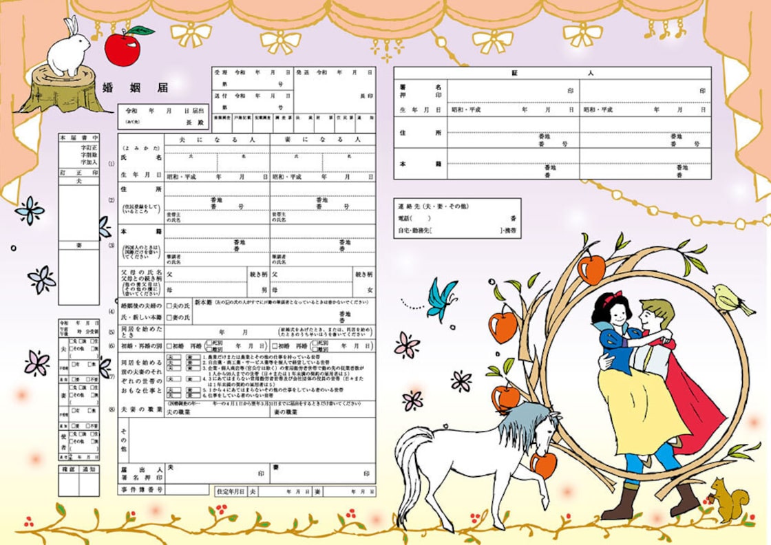 Amazonハイデザイン婚姻届 「 Sneedronningen 雪の女王II 」3枚セット<令和版>法定用紙文房具・オフィス用品。