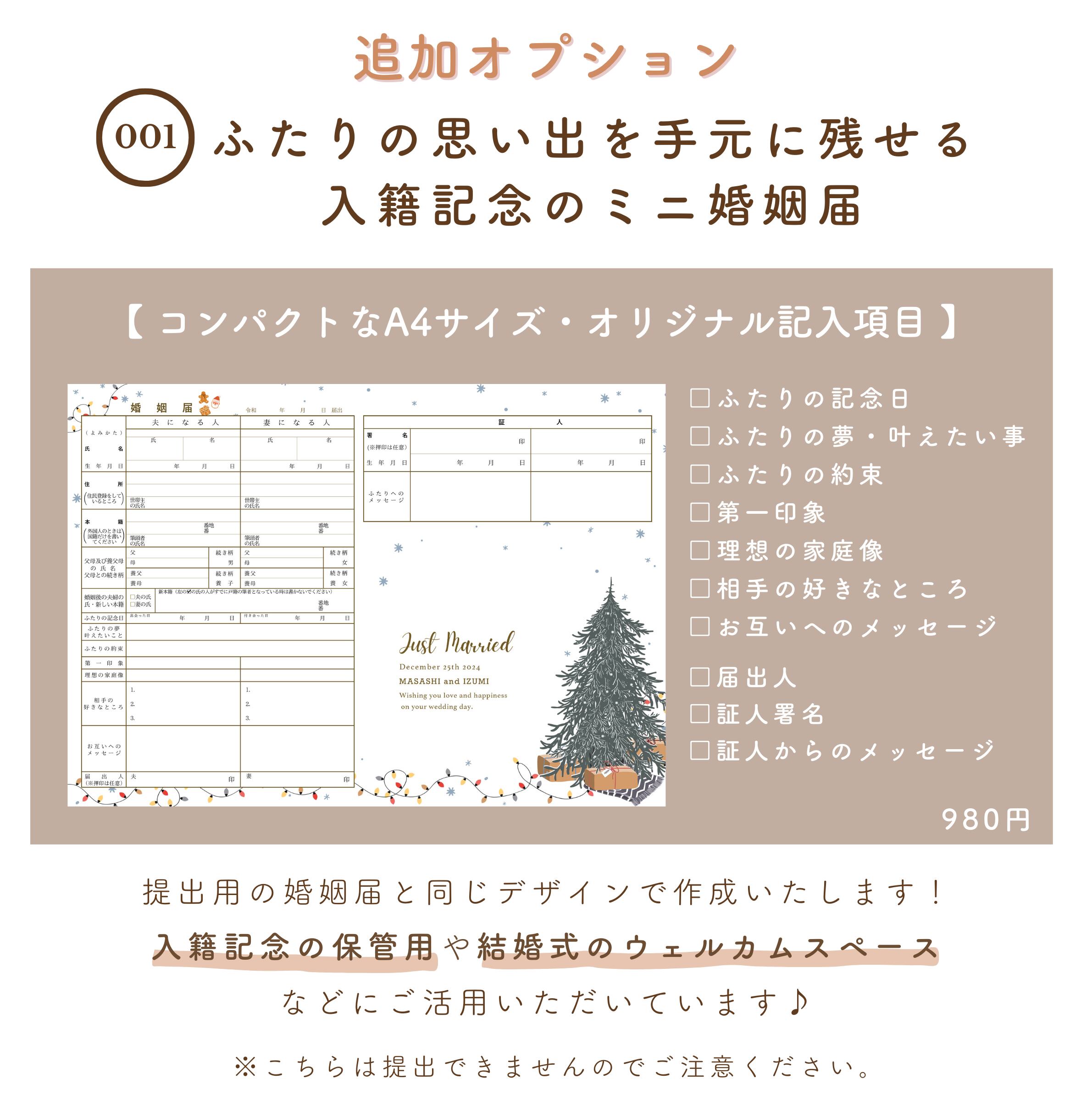 名入れ デザイン婚姻届クリスマス冬シンプルYUIAI おしゃれで可愛いデザイン婚姻届・出生届。