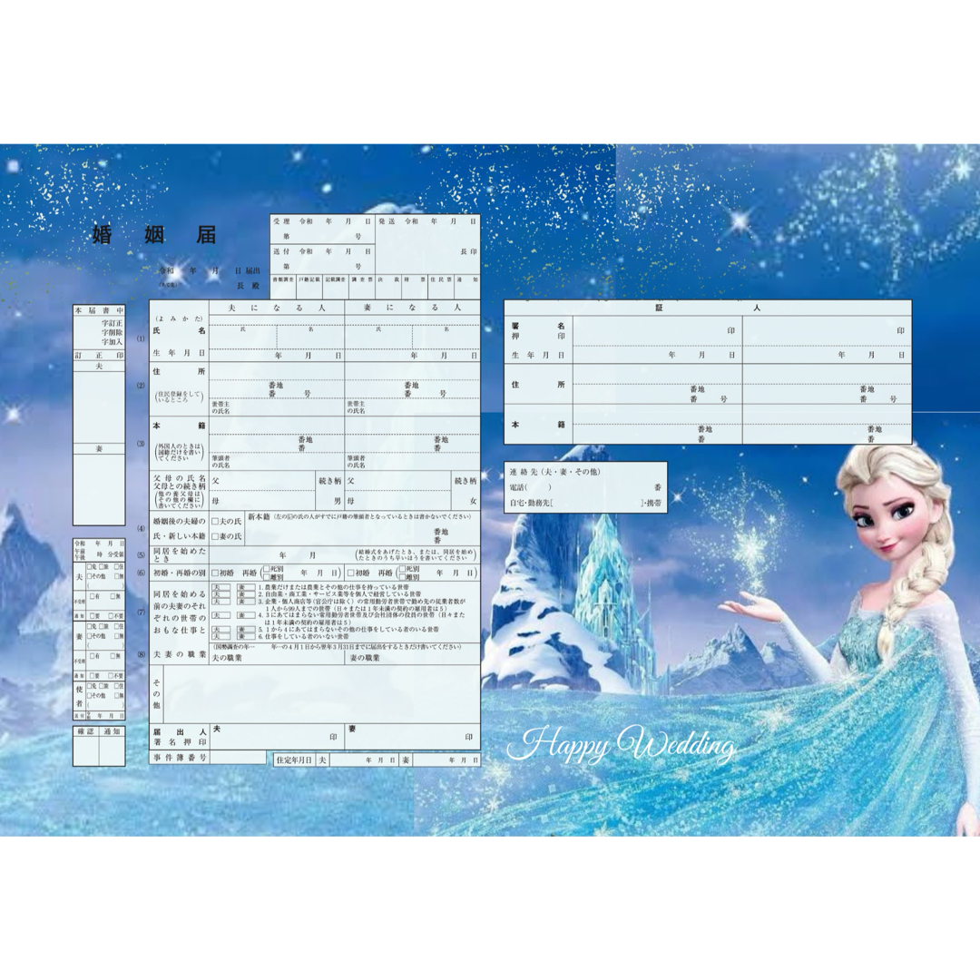 ✨人気商品✨雪雪の女王結晶デザイン 婚姻届 書類。