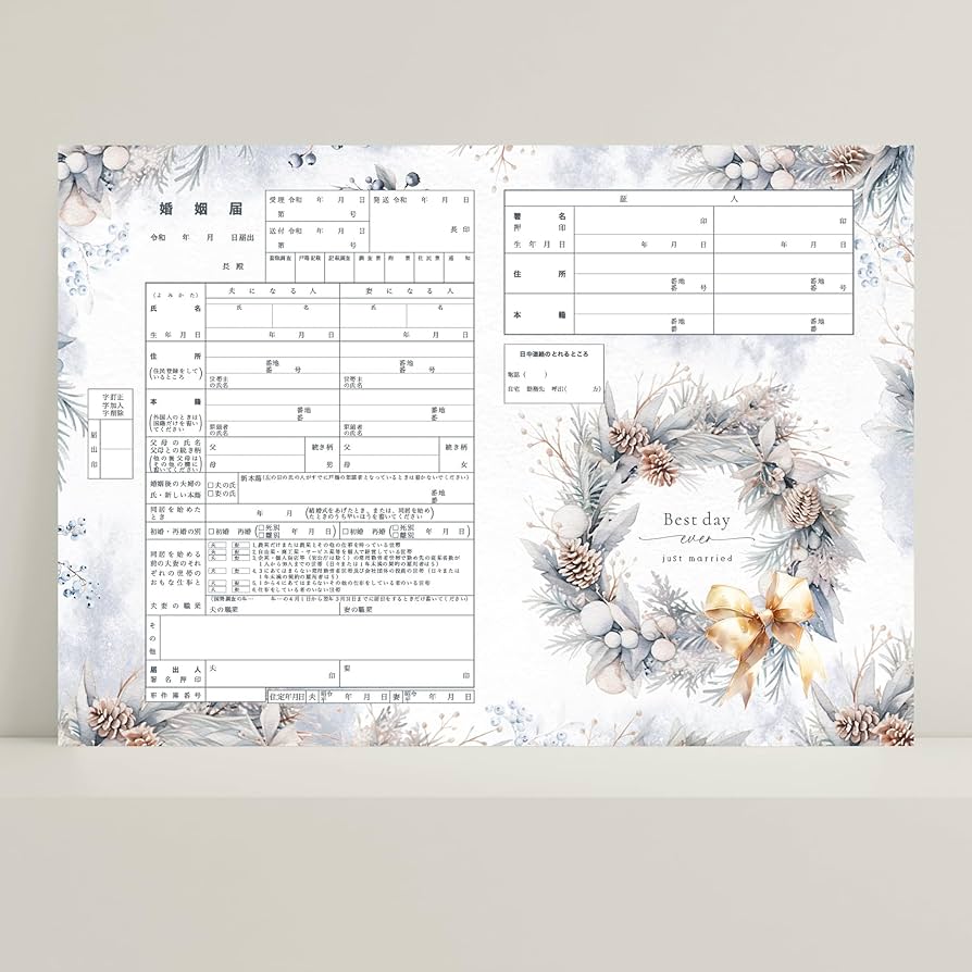 Amazon婚姻届 シンプル ボタニカル 役所に提出できる デザイン婚姻届3枚セット可愛い おしゃれ 冬 クリスマス スノーホワイト白雪法定用紙文房具・オフィス用品。