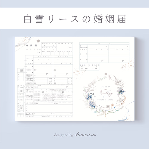 婚姻届 ✦ 白雪リース シンプル ボタニカル 雪 冬 クリスマス デザイン 可愛い おしゃれ 花役所へ提出できる婚姻届お名前・入籍日をお入れします♪- hocco-designminne byGMOペパボ 国内最大級のハンドメイド・手作り通販サイト。