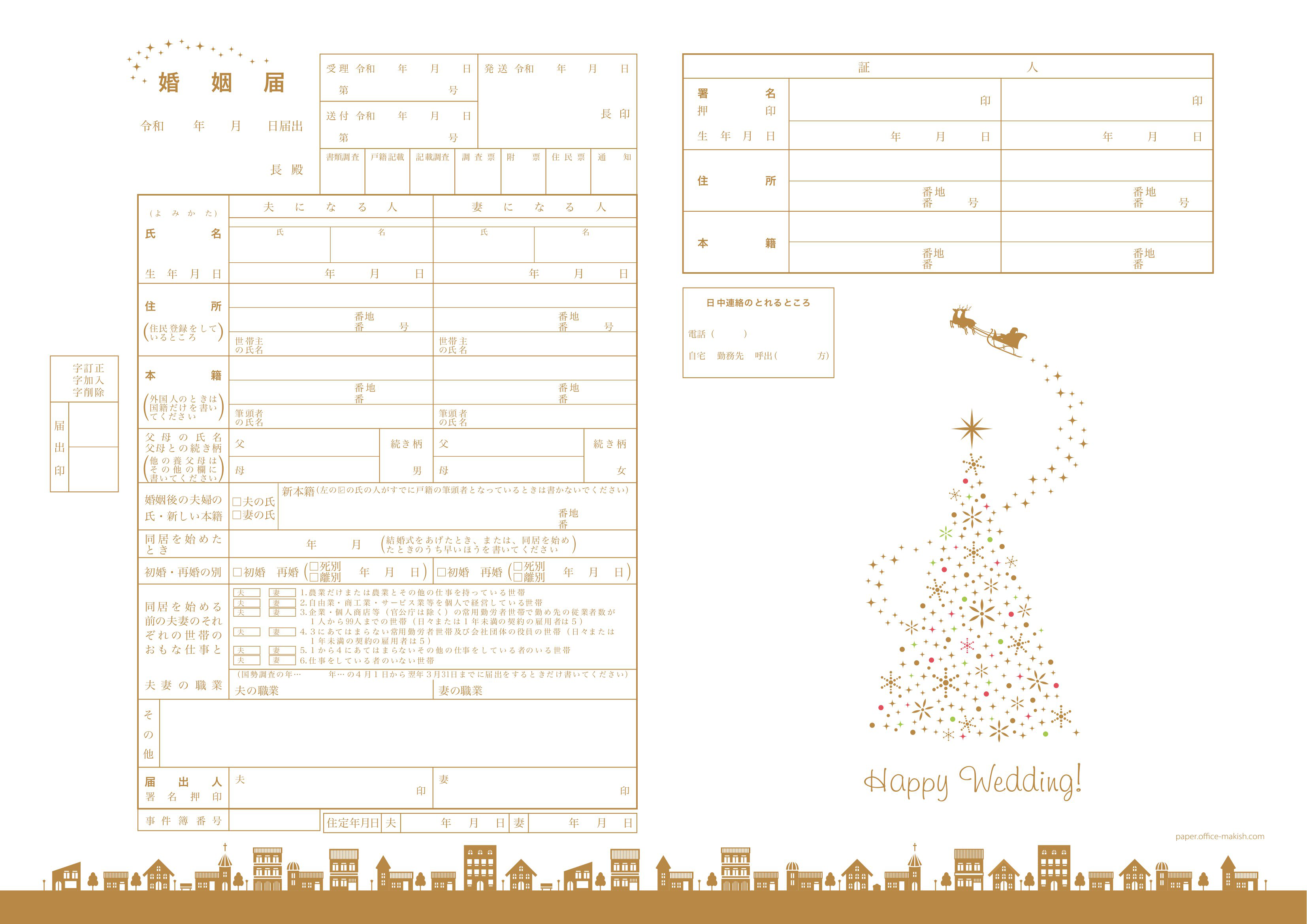 楽天市場 オリジナル婚姻届『雪降るクリスマス』 デザイン婚姻届 3枚セット クリスマスデザイン : bees knees one。