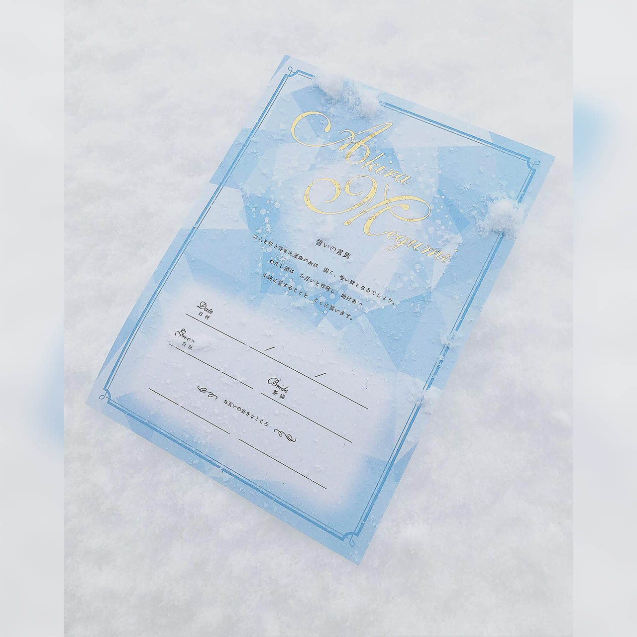雪の結晶 冬の婚姻届♥︎クリスマス 綺麗なスノウ 水色 アイスブルー 名入れなし その他オーダーメイド 注文前プロフ必読💍産休に入りました 通販12768850Creema クリーマ。