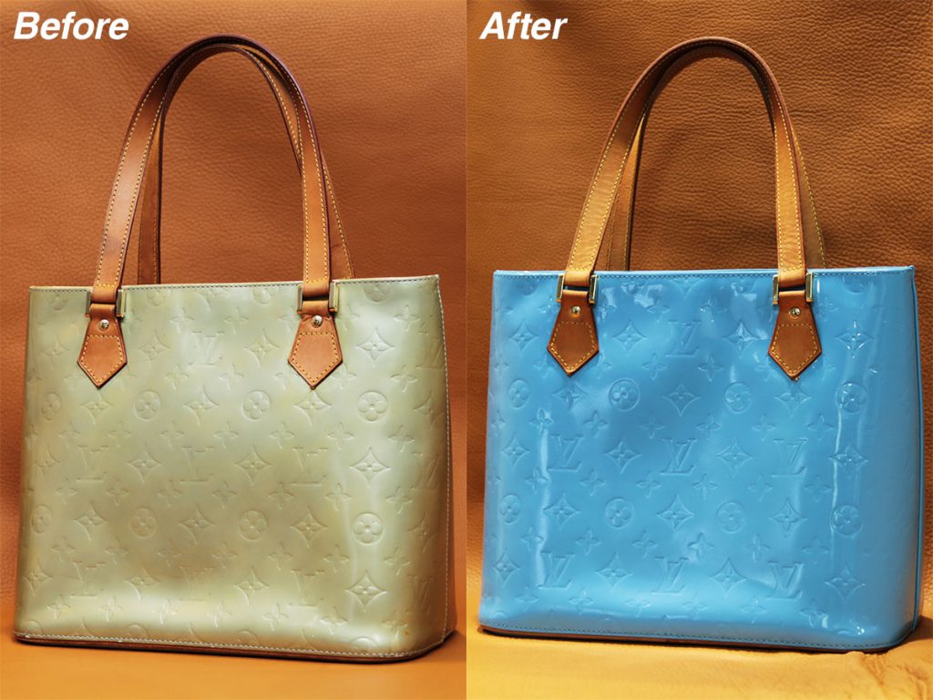 ルイヴィトンのハンドバッグ、 全体の色補修とコバの再塗装を行いました。コバ 縁部分 はご希望通り、一度元の塗装を剥がして全体に合わせた色で再塗装しています🖌️✨湘南 鎌倉 茅ヶ崎バッグ修理 財布修理メガネ修理 時計修理レザークラフト ハンドクラフト。