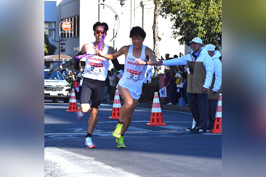 ニューイヤー駅伝 in ぐんま 第69回 全日本実業団対抗駅伝競走大会 1位旭化成長嶋幸宝 茂木圭次郎 葛西潤 キプルト・エマニエル大六野秀畝 齋藤椋 井川龍人 群馬県庁発着 群馬県 日本 クレジット: フォート・キシモト 2025年1月1日 New Year Ekiden2025 in Gunma。